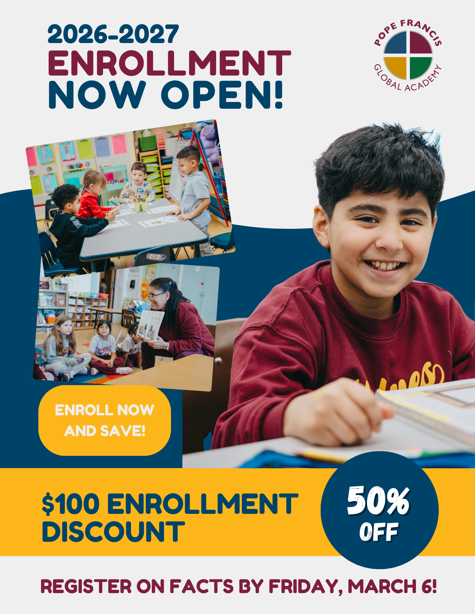 Pope Francis Global Academy is a Catholic elementary school serving 3-year old preschool through 8th grade in Chicago’s Portage Park neighborhood. Our students are engaged in their faith, their academics, and their community. They are each highly valued and feel at home at Pope Francis. Our teachers are inspired by faith and care for their students as their own. Read more about who we are…