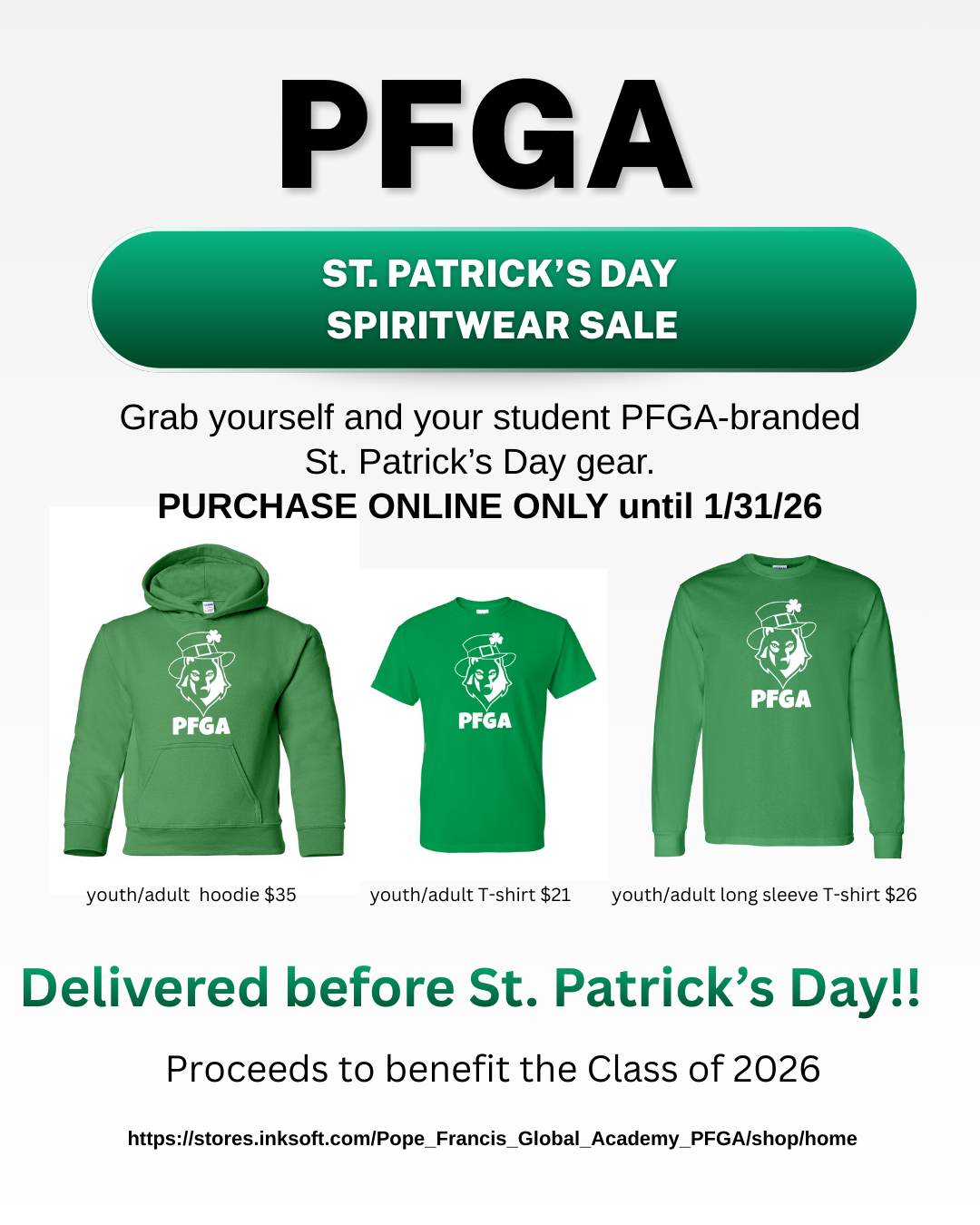 Contact Joanne Kelley to join Parents’ Club, at parentsclub@pfgacademy.org